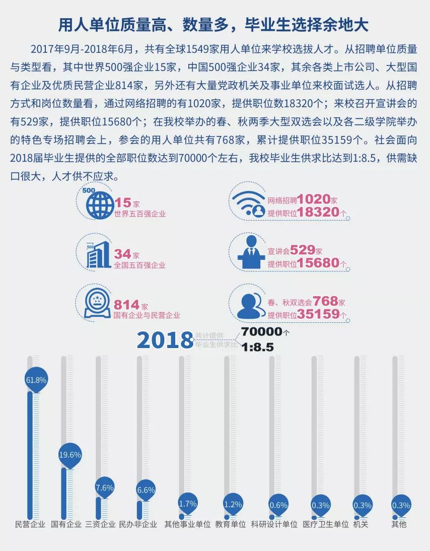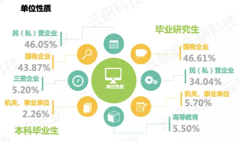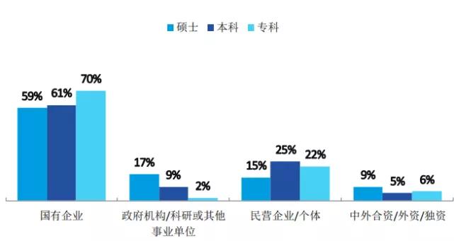从毕业生就业单位看,民营企业(含上市公司)、国有企业和三资企业为毕业生主要选择。