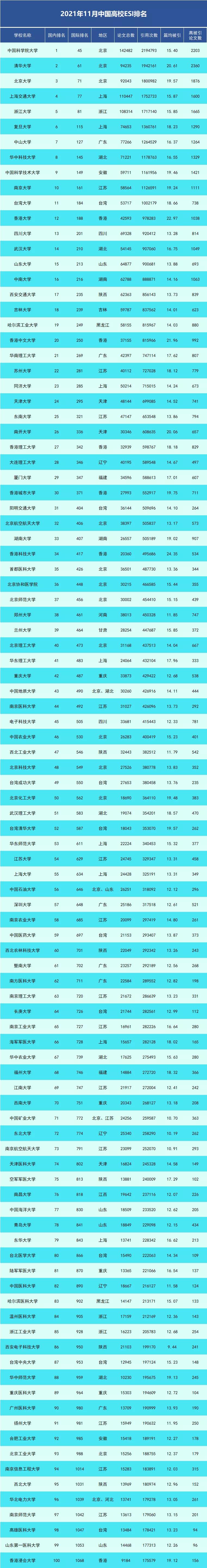 而最近,又有一公认较为权威的排行榜公布啦1科睿唯安发布了最新ESI数据(数据覆盖时间2011年1月1日-2021年8月31日),其中一些“双非”院校表现亮眼!小编给大家整理了一下表格噢!建议收藏,说不定明年挑学校时用得上!
