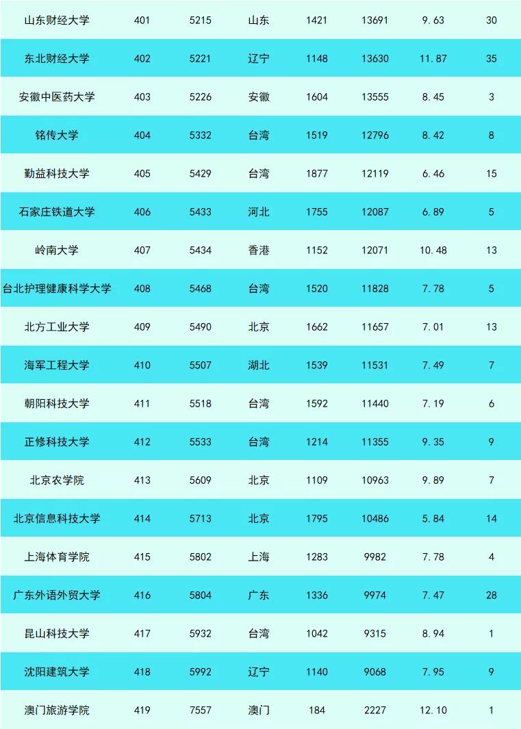 中国上榜高校数为419所(大陆353,台湾55,香港8,澳门3),与2021年9月总数相比增加了11所,而其中不乏一些“双非”高校,一起来看看吧