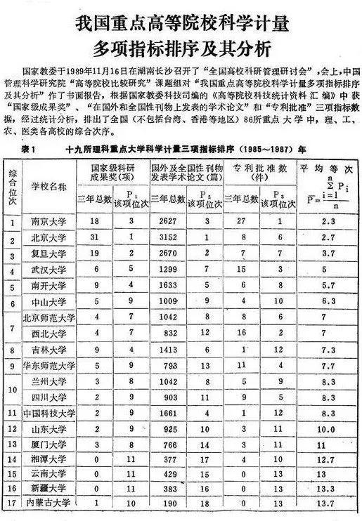 早在1987年,就诞生了国内第一个大学排名,由中国管理科学研究院科发布,对当时国内86所重点大学进行了排名。