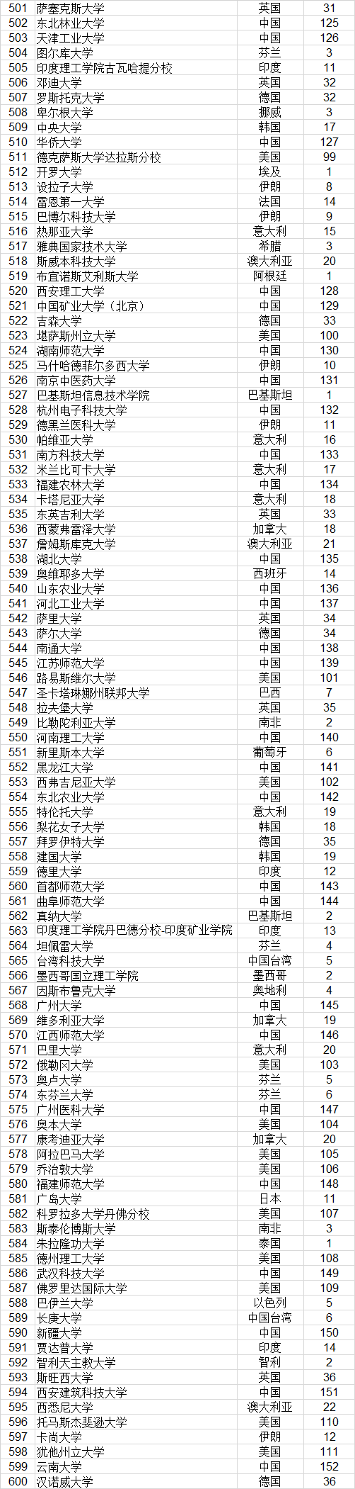 他引总数前1000名大学论文引用胜者排名