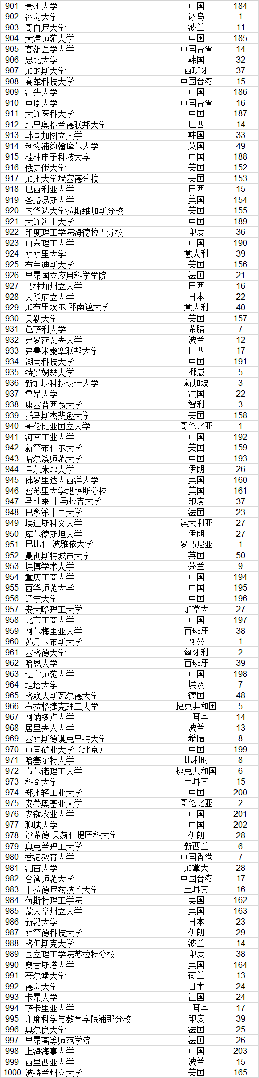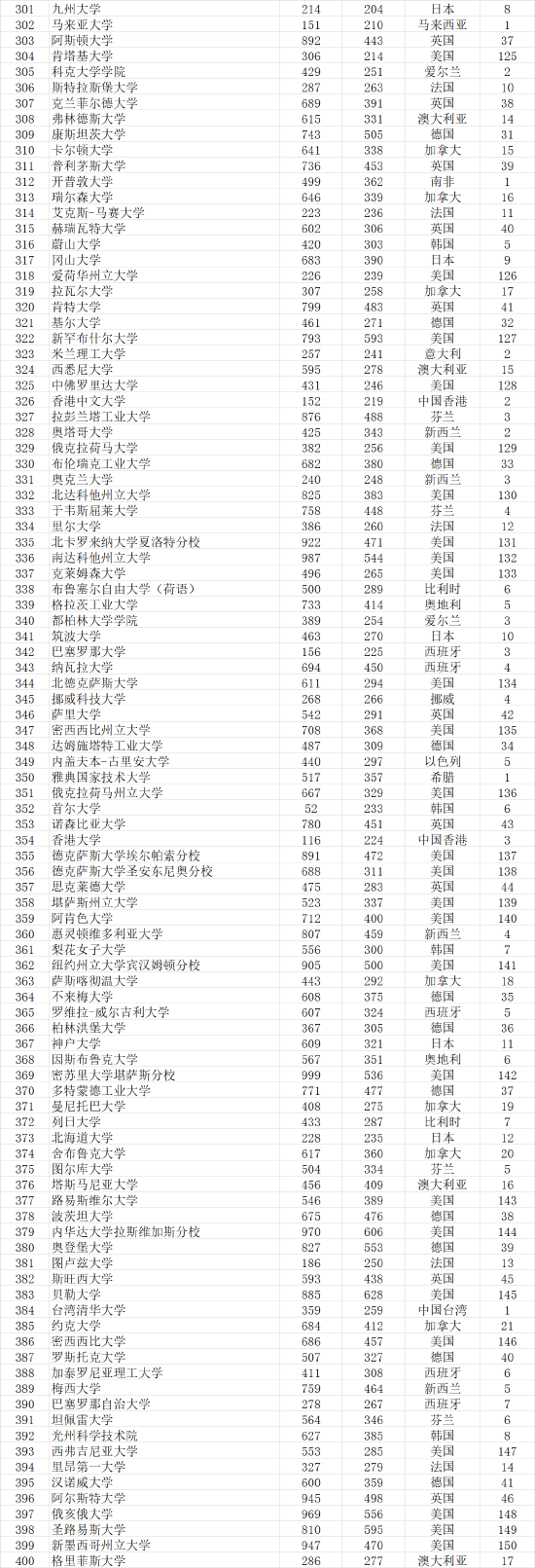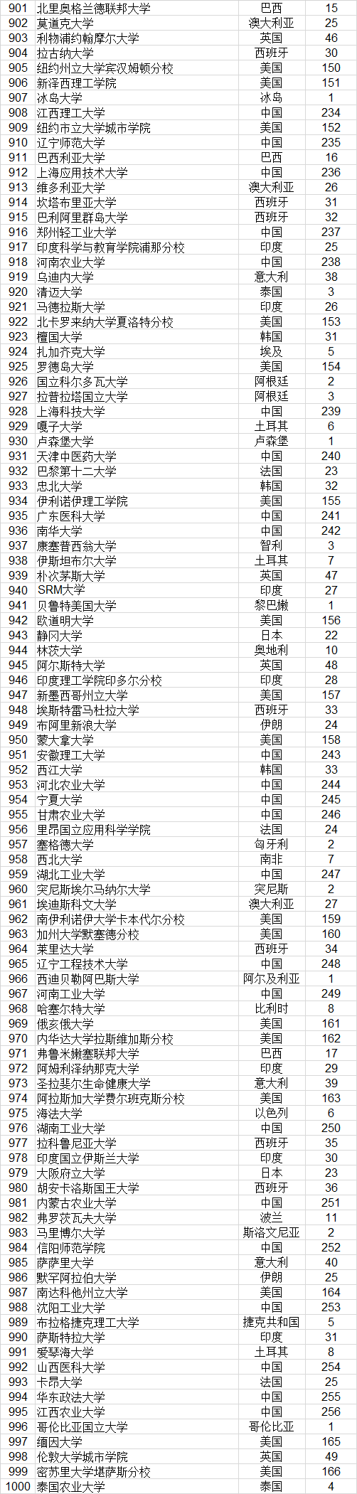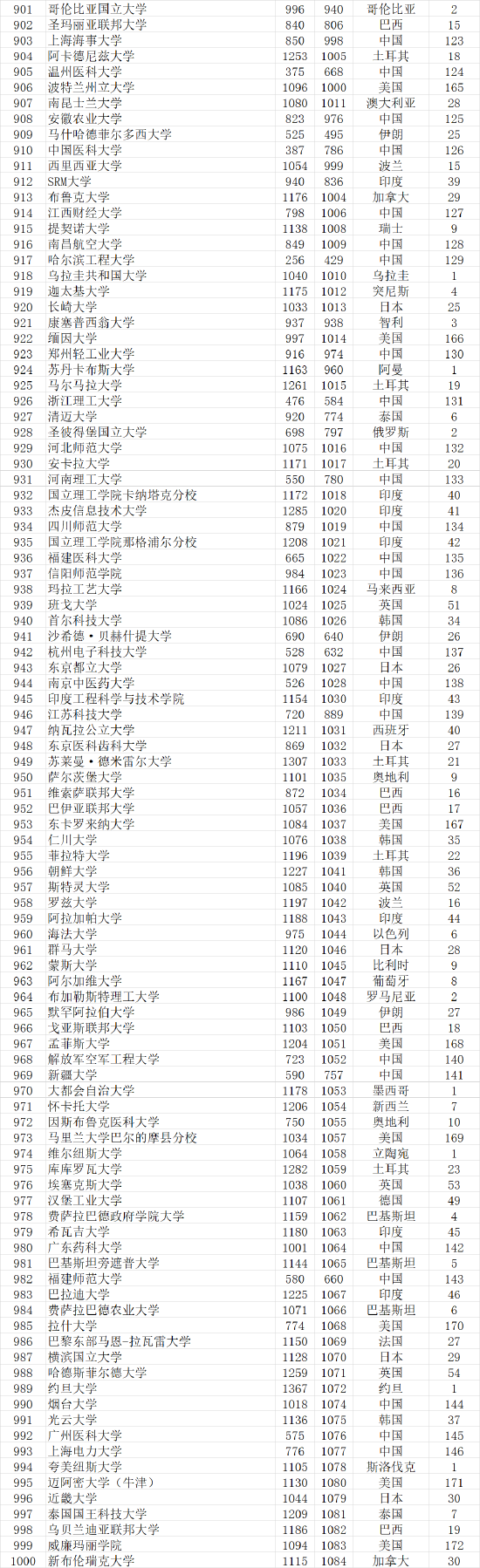 武书连2021世界大学论文初始排名前1000名