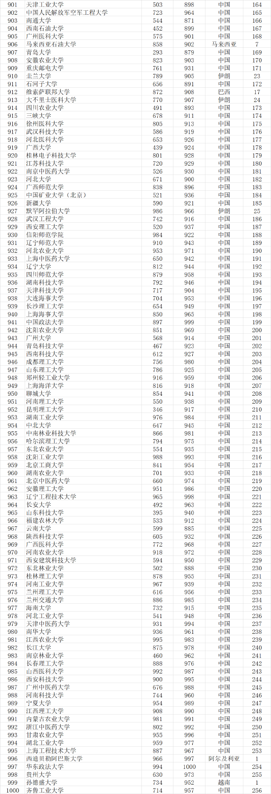 武书连2021世界大学论文引用胜者排名前1000名