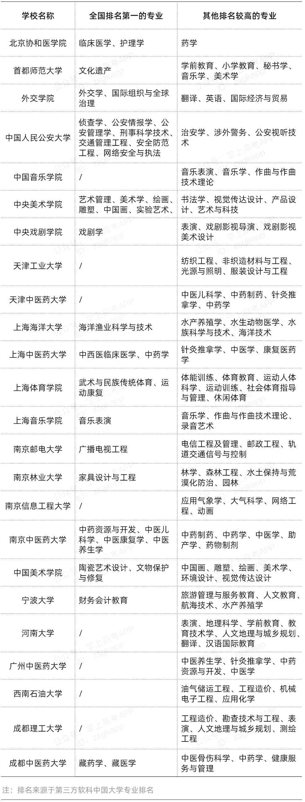 此外,像中央美术学院、中央戏剧学院、中国音乐学院、中国美术学院、上海音乐学院等艺术类院校,其一流学科在全国排名也名列前茅。