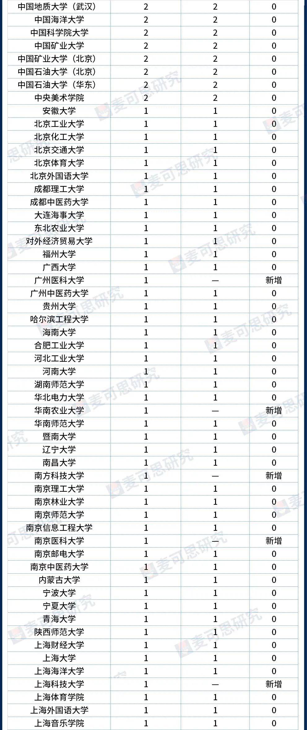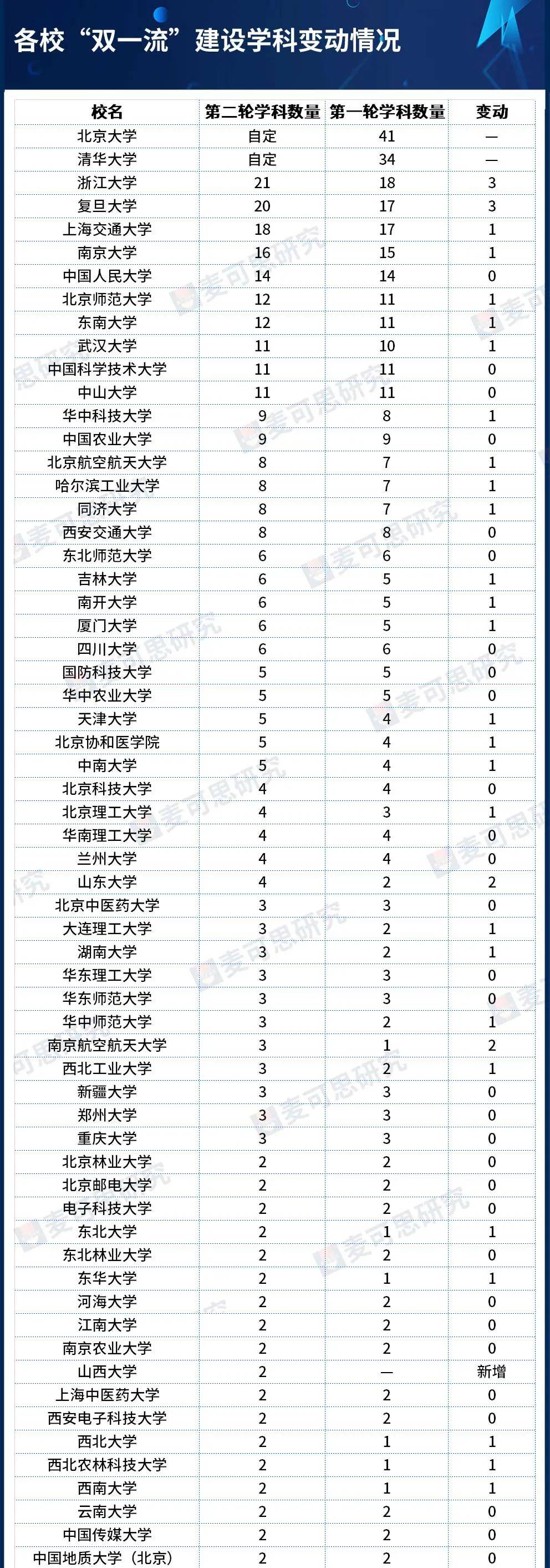 其中,浙江大学、复旦大学成为本轮新增一流建设学科最多的高校,均增加3个。