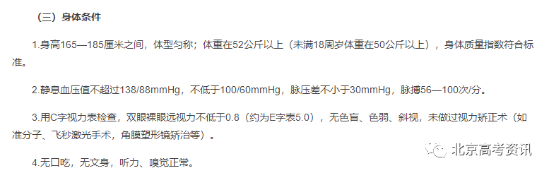 这些院校对体重的要求并不是那么严格,毕竟只要身高符合要求,其他方面也符合报考要求,那么体重在未来是可以增加或减少的。