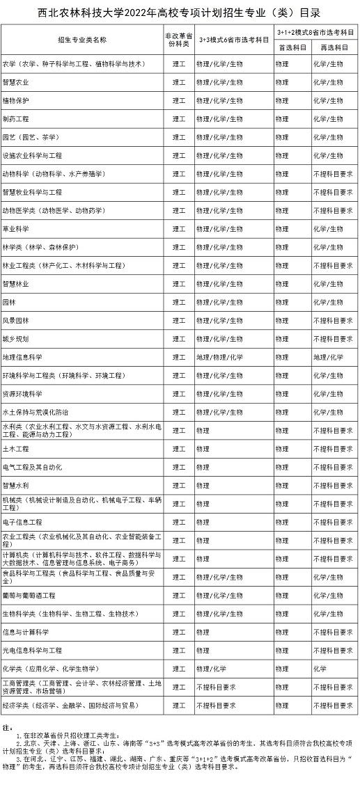 1.西北农林科技大学2022年高校专项计划招生专业(类)目录