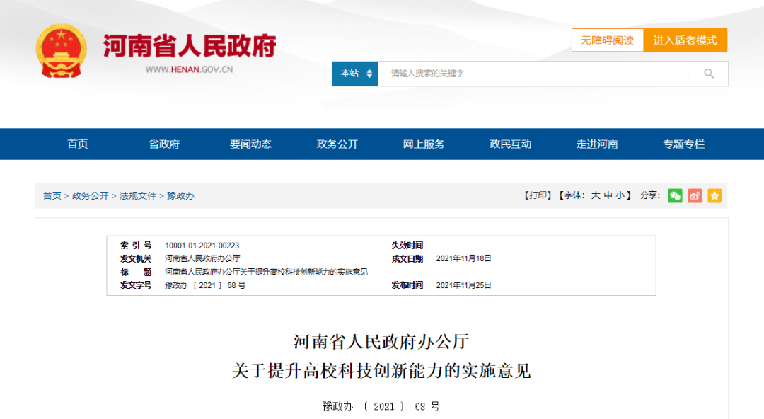 2021年11月,河南省人民政府办公厅发布《关于提升高校科技创新能力的实施意见》,其中提到:整合相关学科资源,创新高校体制机制,吸引行业创新龙头企业和高端研究院所共同组建电子科技大学、航空航天大学等新型研究型工科大学,依托相关专业院校组建独立设置的美术学院、音乐学院、体育学院、外国语学院,填补本科高校类型空白。