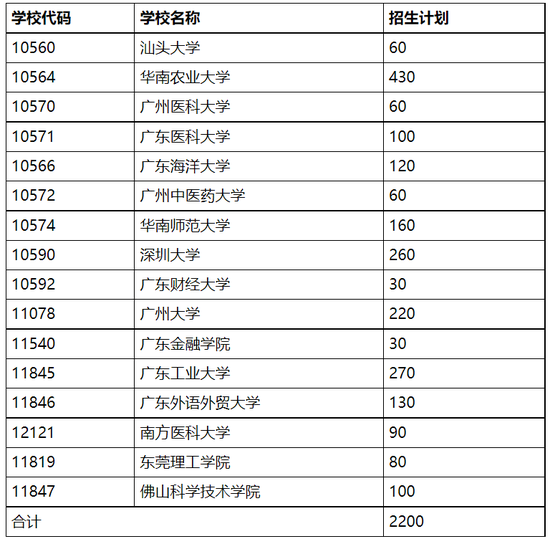 广东省2022年“地方专项计划”招生院校计划安排