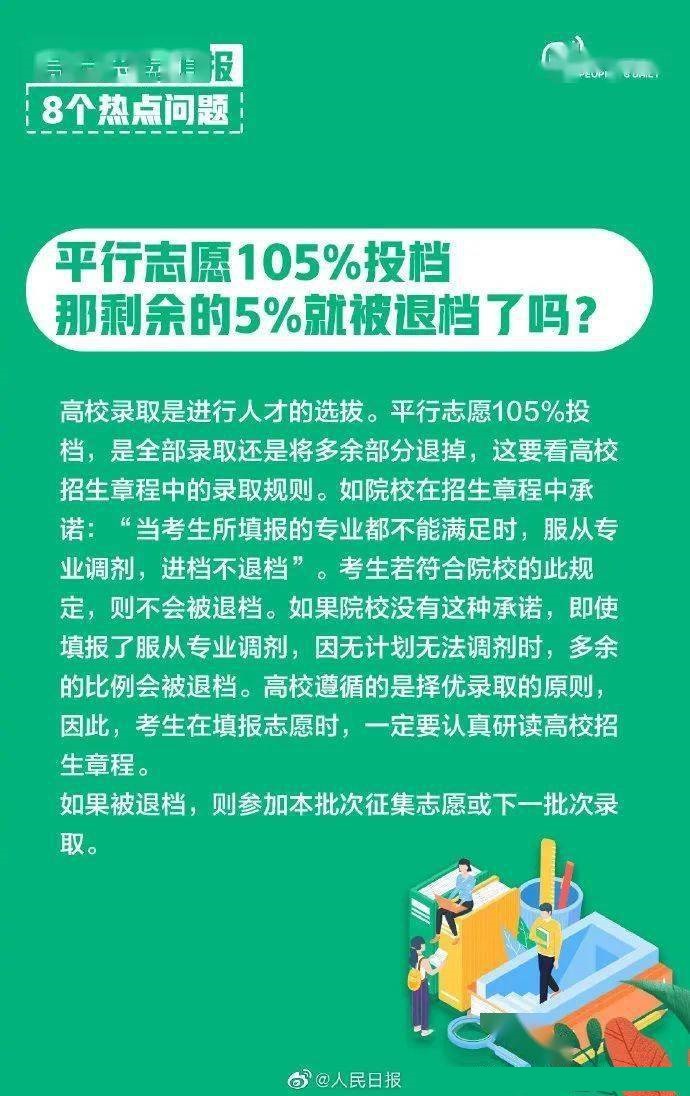俗话说“七分考、三分报”,志愿填报也是一门学问。平行志愿105%投档,那剩余的5%就被退档了吗?专业级差是每个学校都有吗?高考志愿填报8个热点问题,转发收藏!