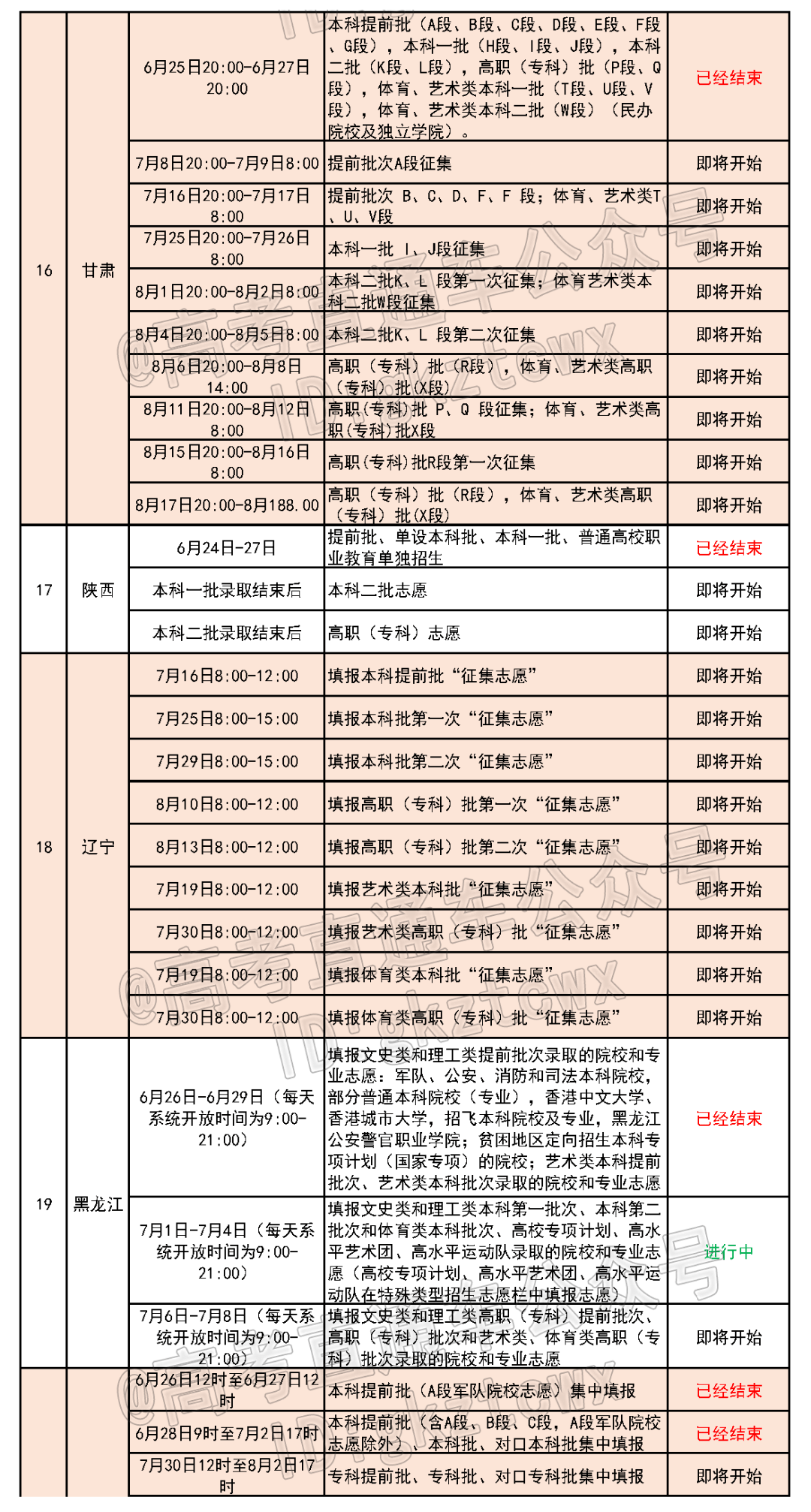 全国各省份填报志愿最新进度
