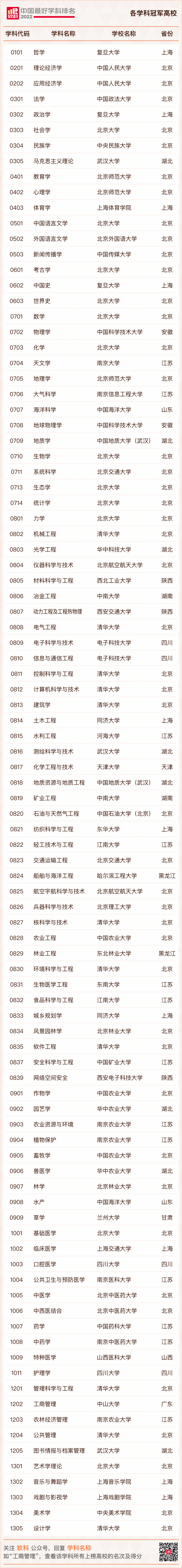 2022年9月21日, 2022软科中国最好学科排名发布 。榜单包括96个一级学科,共有484所高校的5035个学科点上榜,展示了我国高校学科的建设水平。其中, 每个一级学科的冠军学科备受瞩目,他们是各学科领域中的王牌。本文提取各学科排名中位列第一的高校及省市分布情况,一窥这些高校的学科建设风采!