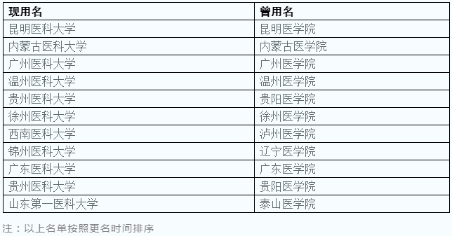 近十年来,除了以上正在努力更名大学的医学院,已有十余所高校完成了更名工作,名单如下: