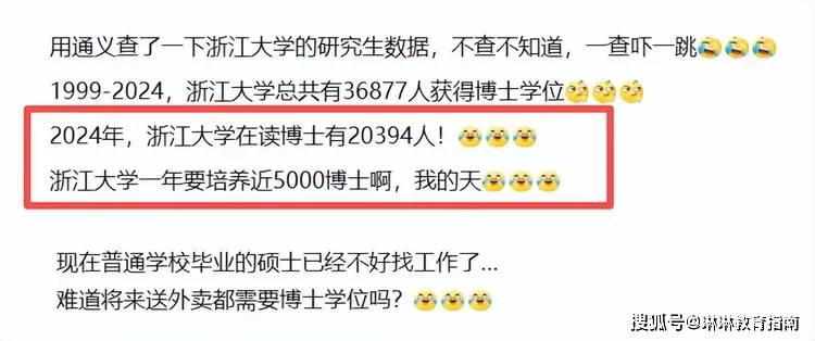 清华大学2025年研究生的招生规模就已经接近一万了,其中博士研究生的数量在4500人左右,而今年的数据估计也会在5000人左右徘徊;浙大今年的博士研究生数量也有望突破5000人。