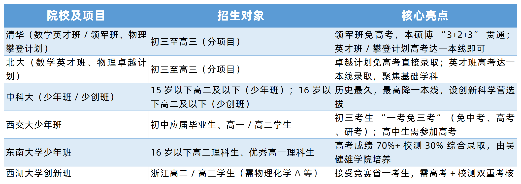以上政策参考2025年招生简章,2026年具体要求以各高校官方发布为准。少年班是拔尖人才的“快车道”,但并非适合所有学生,需结合自身能力与规划理性选择