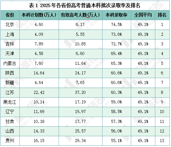 总体来看,2025年共有20个省份的本科录取率超过了49.1%的全国平均水平,从最高的74.5%到最低的38.3%,这种差异背后反映出的是不同省份的高考竞争激烈程度和资源分配的不平衡。