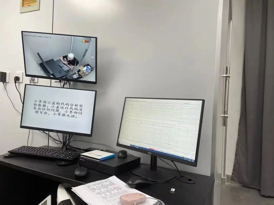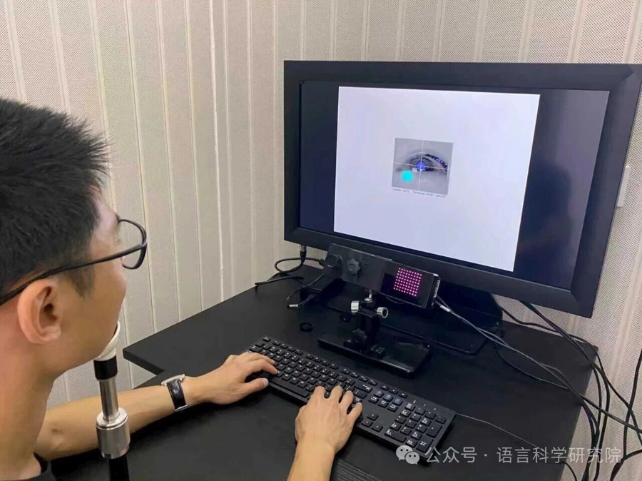 和一般学语言的学生不同,上外语科院学生大多是在实验室中度过的。“学校有5-6个专门的实验室,同学们需要做不同类型的实验研究,如脑电、眼动、核磁等。” 博士三年级学生许瑞璇告诉记者,比如眼动实验,是根据架设在电脑屏幕下的眼动仪,追踪阅读时瞳孔运动,计算出阅读者看屏幕的位置,从而分析阅读者的语言加工的过程。学校提供的行为实验室、脑电设备等硬件支持,让学生能完整经历“实验设计-数据采集-分析可视化” 的科研生命周期。