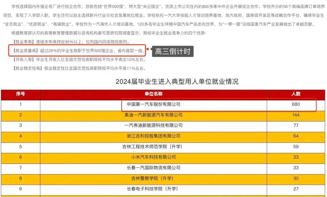 就比如长春汽车职业技术大学,26%以上毕业生都是在世界500强企业就业。