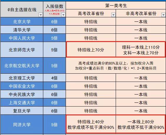 此外,开展强基计划招生的高校全部为“双一流高校”,这就要求考生的高考成绩要与这些高校的层次相匹配。我们截取了部分高校的入围规则,从高校对分数线的要求上不难看出入围难易。
