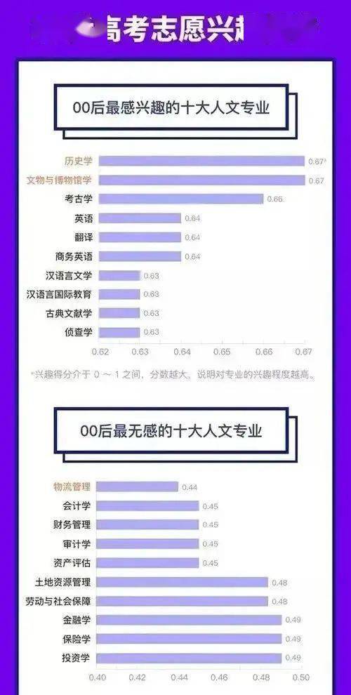 与过去工资高、就业好的专业喜好标准不同,00后学生越感兴趣的专业,未来薪资水平反而不高。出乎意料地挤入学生最感兴趣人文专业榜单前三的,是被称之为“冷门专业”的历史学类专业:历史学、文物与博物馆学和考古学;