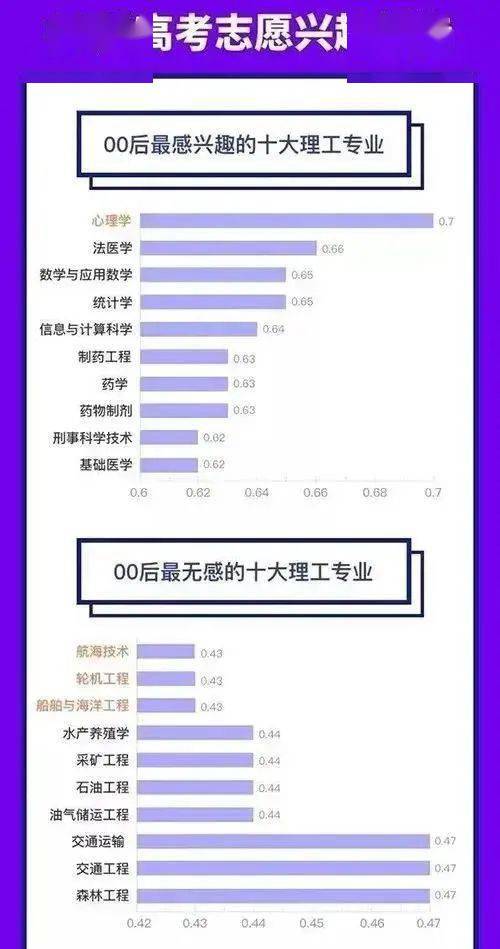 而00后学生最不感兴趣的理工专业,其就业方向多为传统行业。如航海技术、轮机工程、船舶与海洋工程、水产养殖学、采矿工程、石油工程、油气储运工程等。