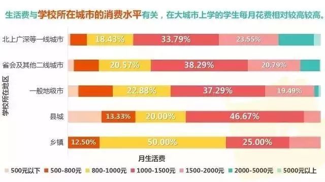 有的学校校区在城市中心,有的在郊区或开发区,消费水平也肯定不一样。城中心的生活费需要更多,郊区的消费水平低、消费场所较少,一般花销较少。