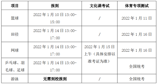 (1)报到及体育专项测试等相关安排