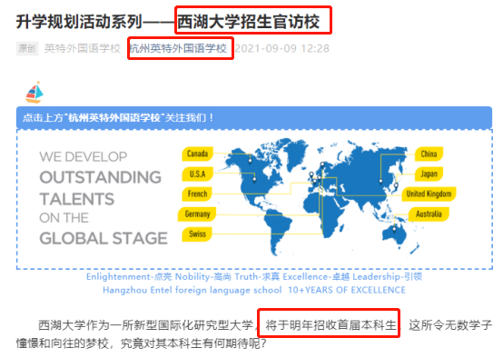 文章中还提到,西湖大学招生官们走进了高三年级教室, 针对西湖大学的录取要求和招生流程等方面做了英文交流。