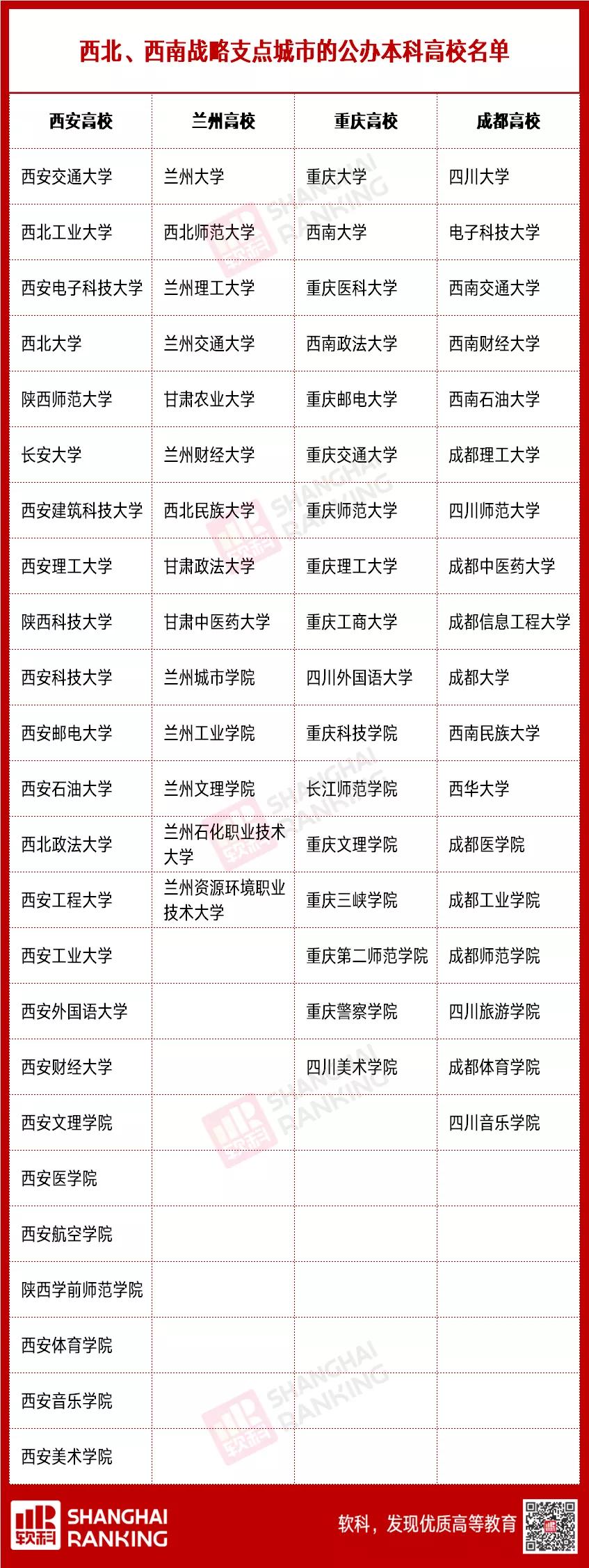 目前,以西安、兰州、重庆、成都为核心的地区汇聚了大量优质高等教育资源,也是西部地区最大增长极,在西部大开发战略中担当引领者。未来,有望成为西部地区实现可持续发展的“新增长极”,引领西部的强中心。