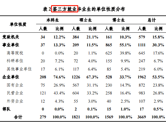 下述统计的均为 签三方就业的毕业生,灵活就业情况未知。