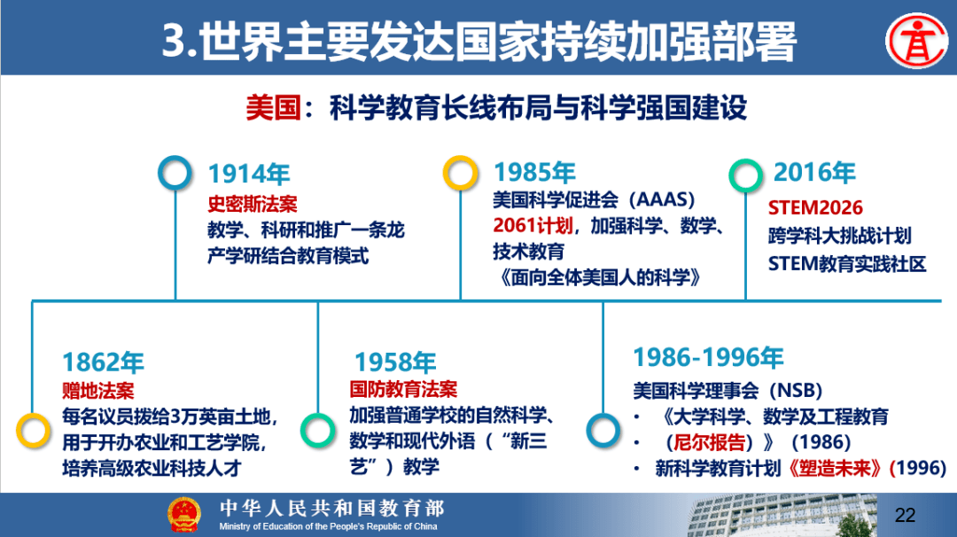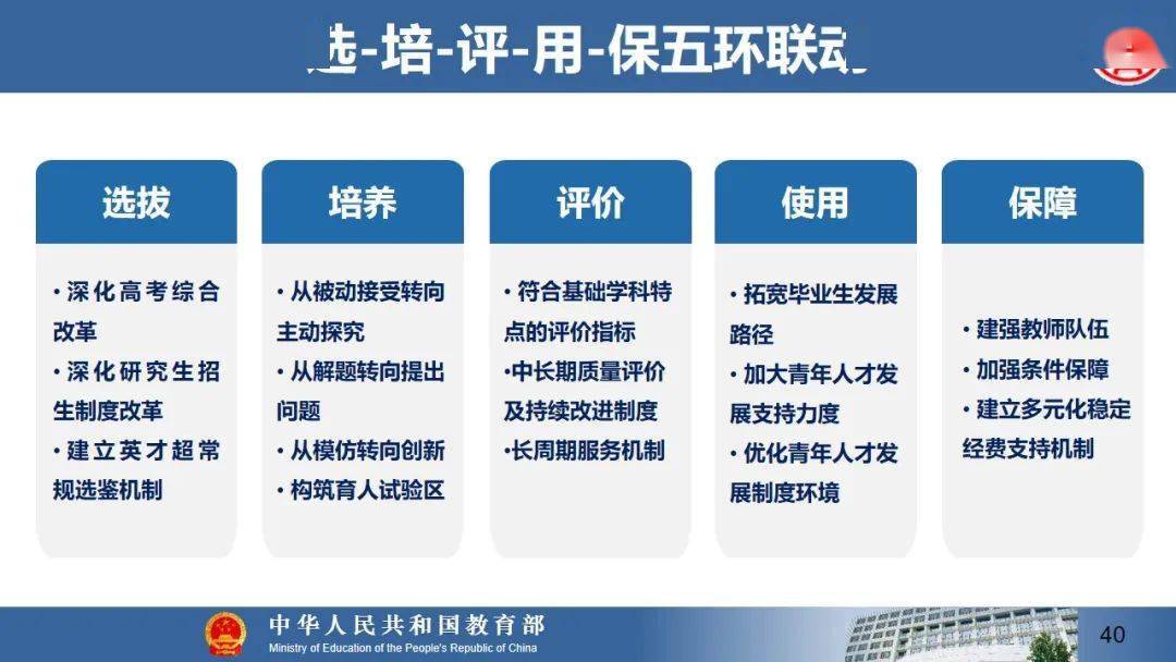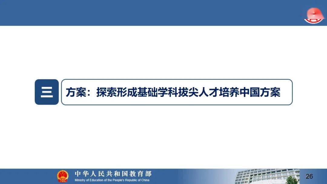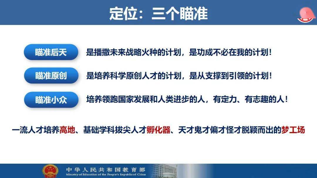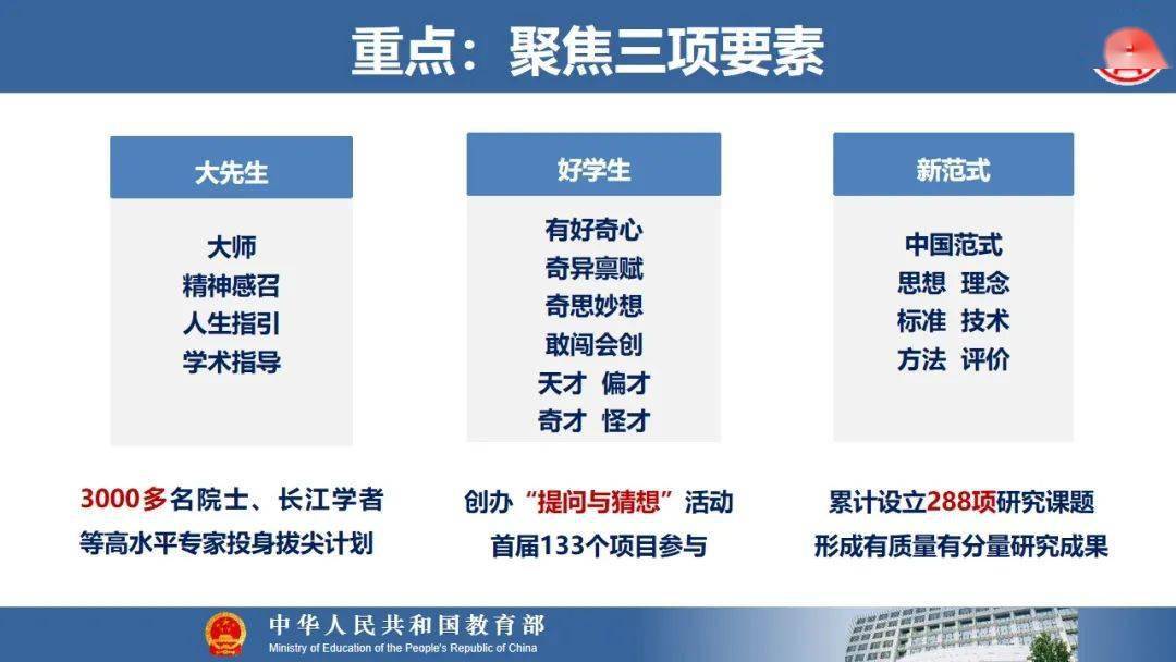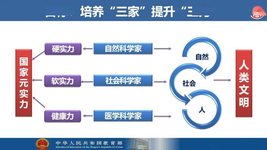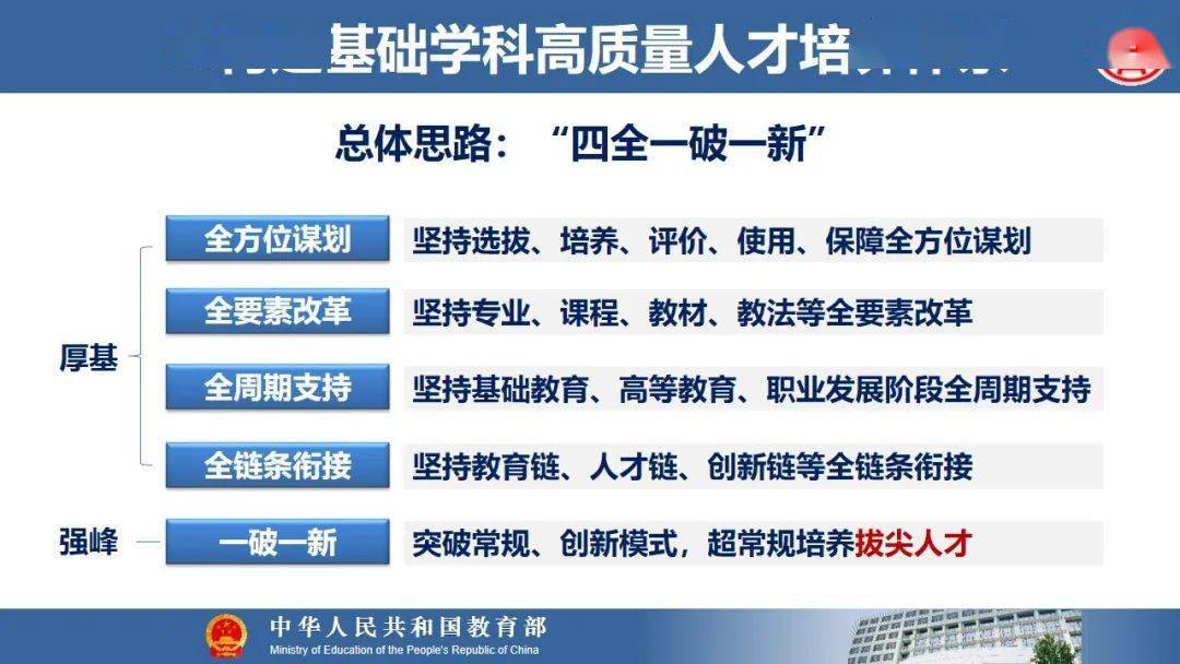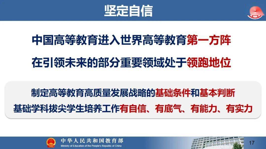 二是“目标”,从党中央国务院高度重视、发达国家加强部署等方面分析形势任务,提出高等教育要肩负重大使命、发挥主力军作用,要把基础学科人才培养作为关键目标。