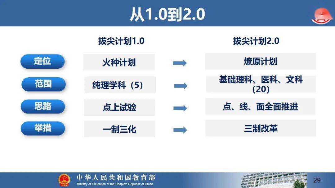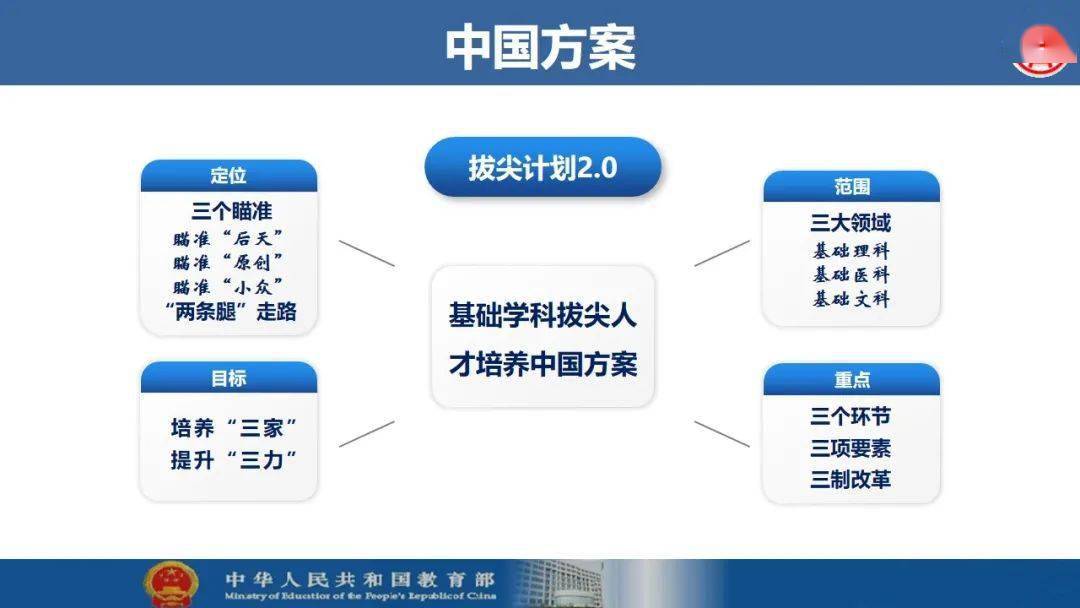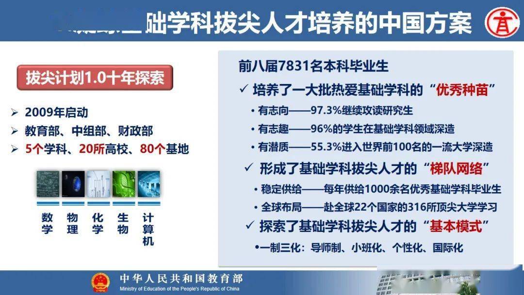 三是“方案”,凝练拔尖计划2.0育人模式,形成基础学科拔尖人才培养的中国方案,构建高质量基础学科人才培养体系,为建设世界重要人才中心和创新高地奠定基础。