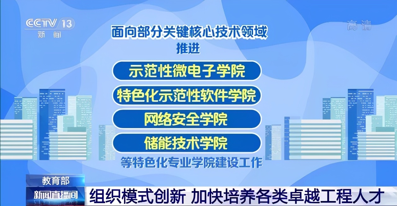 在专业特色学院建设方面,面向部分关键核心技术领域,推进示范性微电子学院、特色化示范性软件学院、网络安全学院、储能技术学院等特色化专业学院建设工作,培养关键领域急需人才,服务相关产业高质量发展。以示范性软件学院为例,首批已在关键基础软件、大型工业软件、行业应用软件、新型平台软件、嵌入式软件等5大领域布局建设33个特色化示范性软件学院,培养满足产业发展需求的特色化软件人才,推动关键软件技术突破和软件产业生态构建。
