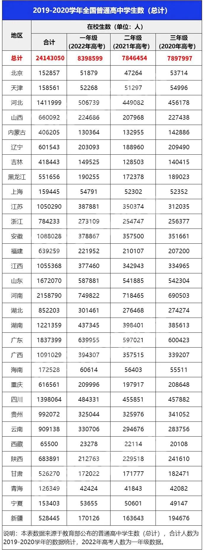 所以理论上,2019-2020年度高一年级的在校生人数加上2021年的高考复读人数则可以大概预测出2022年高考的人数。