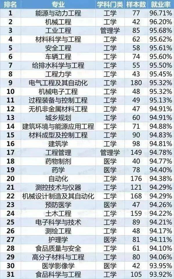2020年113个本科就业率排行