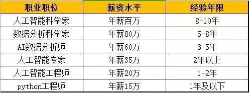 2018年python、大数据、人工智能从业者薪资数据显示,北上广三地的平均薪资水平分别为29036元、25163元和23036元,年薪几十万甚至百万。人工智能是未来的发展方向,国家政策也在强力扶持,可以说学人工智能类专业就相当于捧上了“金饭碗”。