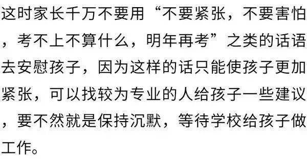 特别提醒家长,要保持正常的期望心理,接受学生现实表现和现有能力,合理施教:变怒其不争为激励促进;变责怪埋怨为冷静劝导;变高分要求为适当指标;变学习施压为放松调节。