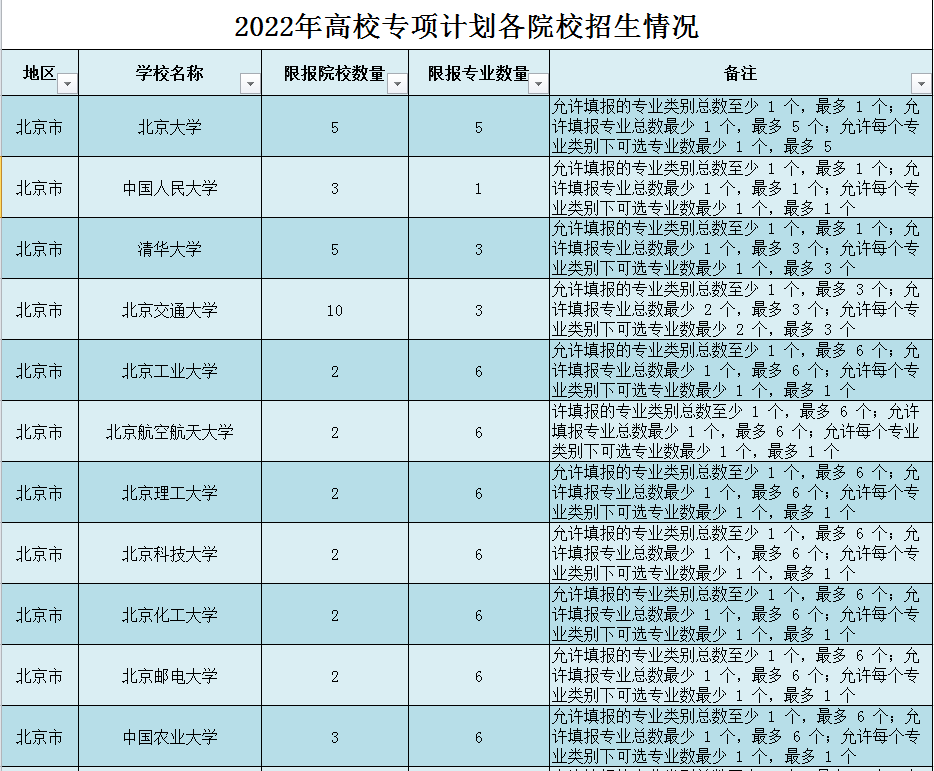 2022年高校专项计划院校限报相对宽松,大部分高校限报3-5所高校,还有26所院校限报数量超过10所,这种几乎是不限报。