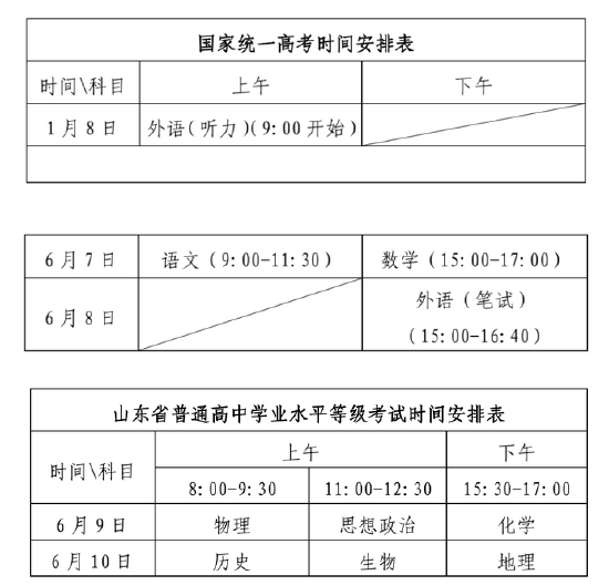 山东夏季高考实行“3+3”考试模式。国家统一高考科目使用全国统一命题试卷,普通高中学业水平等级考试自主命题。国家统一高考外语分英语、俄语、日语、法语、德语、西班牙语等6个语种,由考生任选其中一个语种参加考试。
