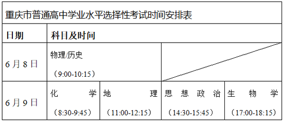 (2)普通高中学业水平选择性考试。普通高中学业水平选择性考试科目考试时间安排在6月8日上午和6月9日全天,每科考试时长均为75分钟。