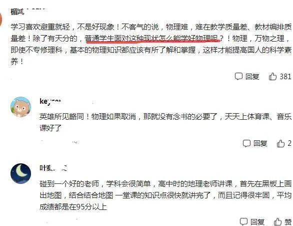 高中生如果都抱着这种想法,哪个学科难,想要取消,怎么能成为全面发展的人才,最起码的物理知识都要掌握,这样才能提高国人的科学素养。