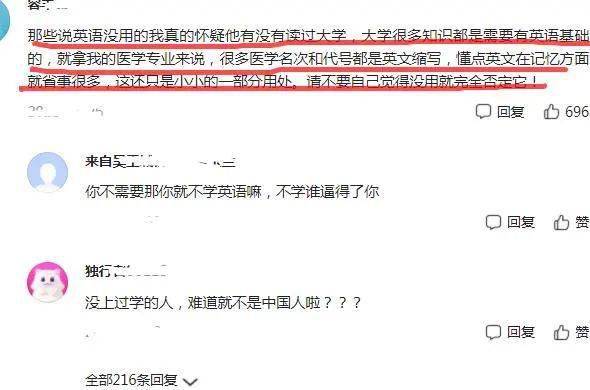 更多人觉得“英语”有取消的必要,或者改成选修课,但是医学生站出来了,认为学习英语很有必要,上过大学就会明白,学历高方便找工作,考研成了众多大学生的首选,英语是要考的,想顺利毕业,也要考英语四六级。