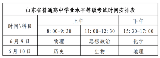 普通高中学业水平等级考试由我省自主命题,考试时间安排在6月9日—10日,每科考试时间为90分钟。