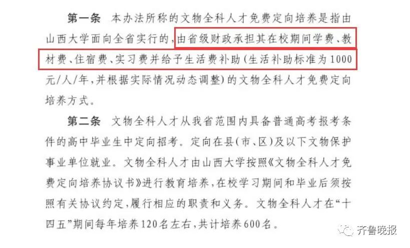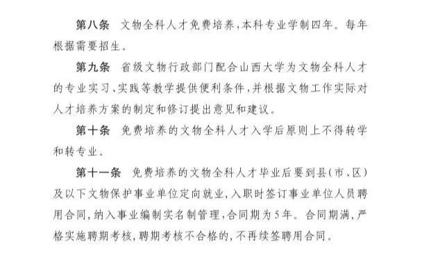 其中指出,山西将用5年时间,通过定向招生、免费培养、定向分配,为县以下基层文博单位输送600名文物全科人才,入职后直接为事业编制。