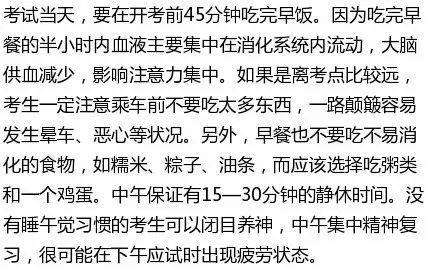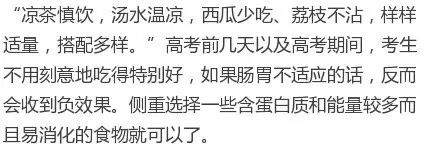 有些家长误认为高考前应该给孩子加强营养,给孩子吃大鱼大肉。学习哥觉得,其实那没有必要,孩子平时吃什么就吃什么,孩子爱吃什么就吃什么,只要孩子食欲好,在一般情况下孩子的营养都会得到满足,关键是要做到营养平衡,合理。不在于说给孩子增加什么蛋白质就能提高什么记忆能力,这种增加蛋白质和提高记忆力的关系暂且不说,就算真的吃了富含蛋白质的东西短期内也不可能提高记忆力。
