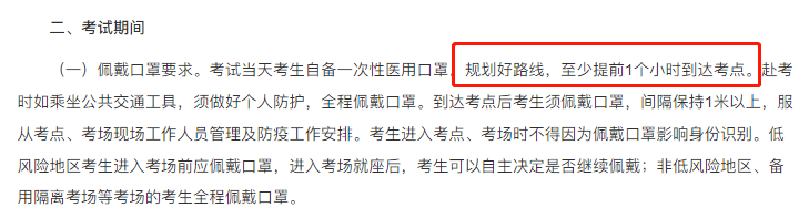 如云南省《2022年普通高考防疫须知(二)》里,要求考生“规划好路线,至少提前1个小时到达考点。”
