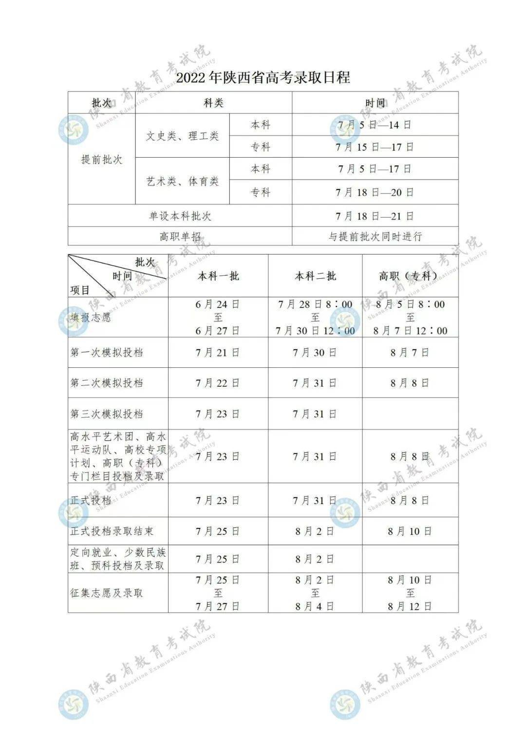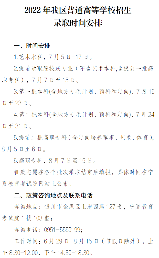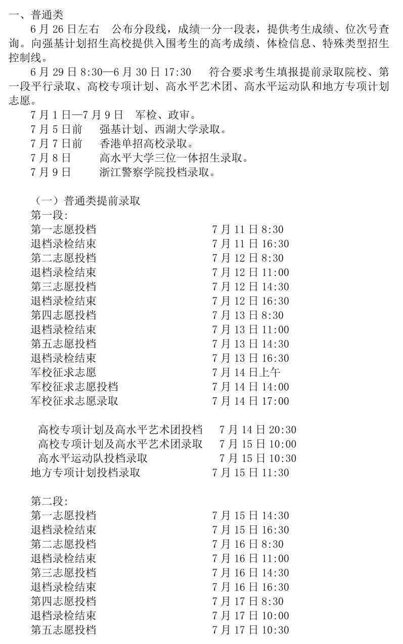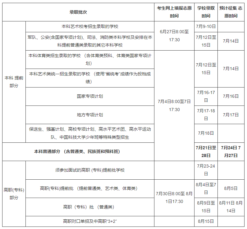 6.高职(专科)批院校录取:8月7日至15日。