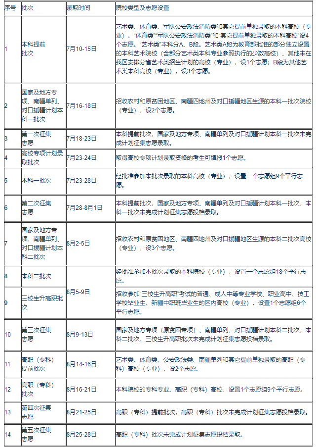 2.本科批院校录取:7月11日至23日。