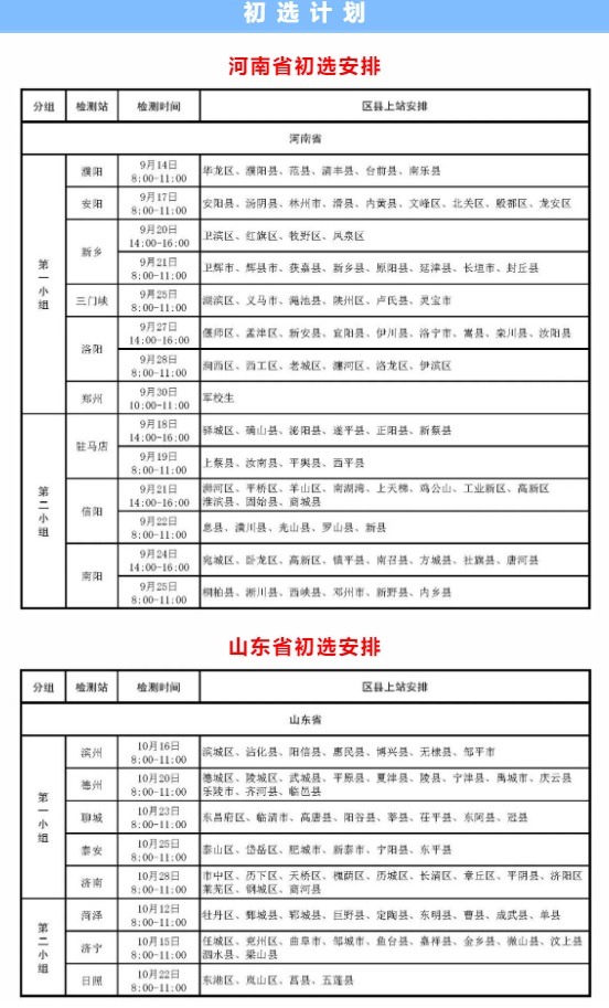由济南选拔中心组织宣传发动、报名和身体基本条件筛查。(山东、河南两省初选时间安排附后)