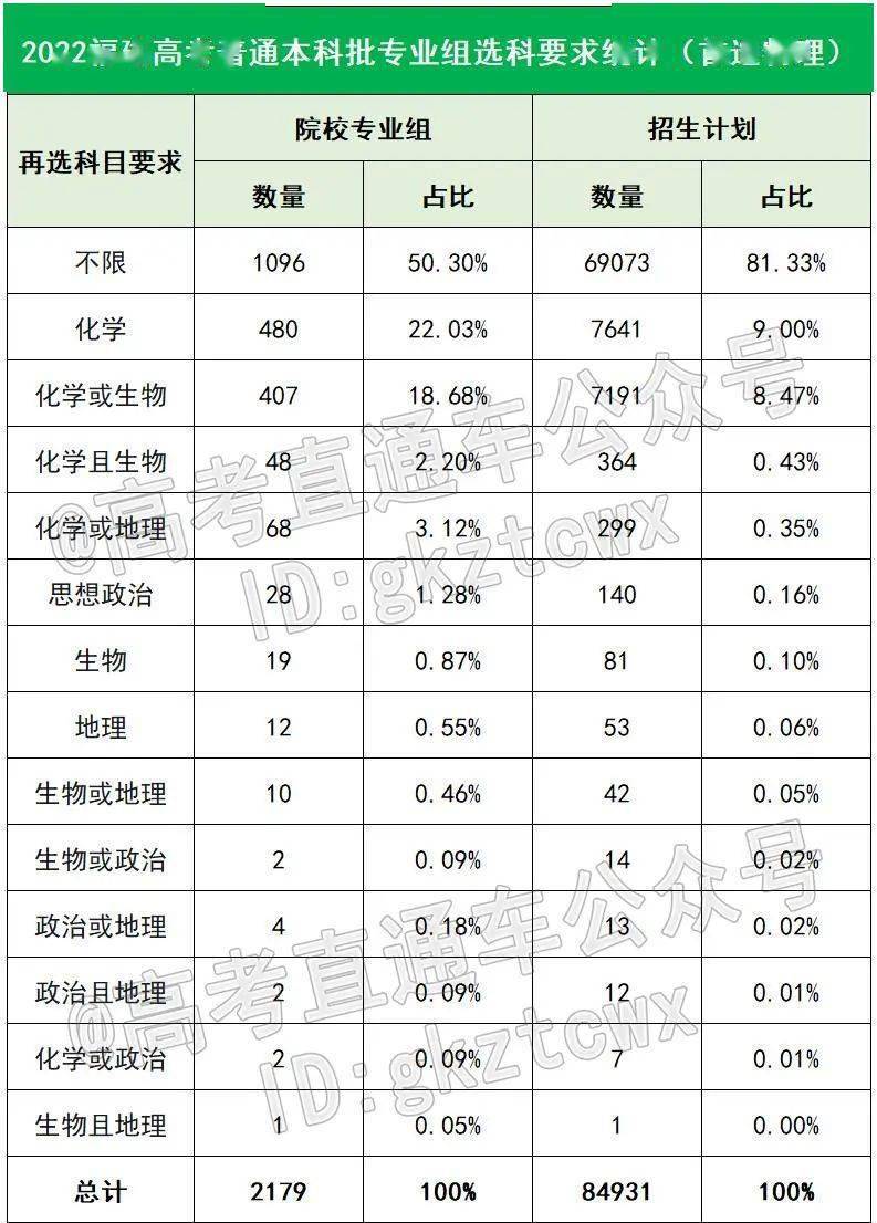 新高考模式下,各种选科组合的可报专业覆盖率分别是多少?看完对广东、福建 2022 年院校专业组选科要求的分析,我们再来看看,如果具体到可报专业,哪个选科组合最有利。